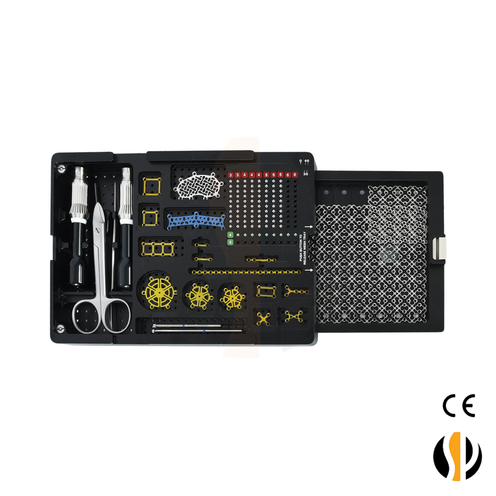 This is a modular external fixation system used in orthopedic procedures to stabilize bone fractures. It’s commonly used in limb fixation (arms, legs, or hands) when internal fixation (like plates or nails) isn’t suitable.